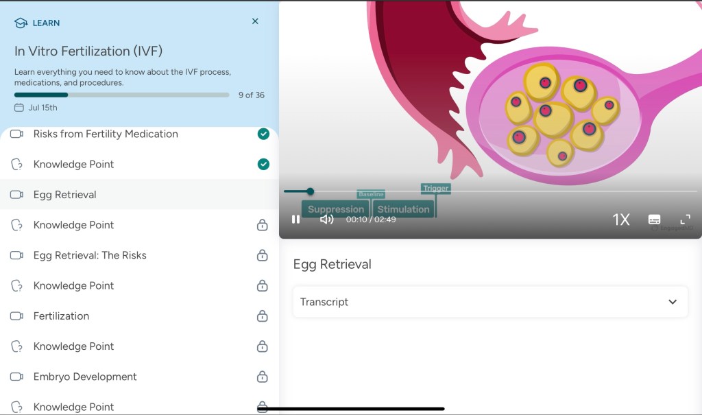 So, now I know all the medications that are involved as well as the risks. Currently, I’m on birth control, which is part of the suppression stage of all this. Eventually, I’ll stop the birth control and be put on other medications and I think a daily injection. The aim is to have about 10 eggs that they can retrieve from me. They’ll inseminate, but not all of them will fertilize, so they’ll lose some eggs. Not all the eggs will reach the ideal phase for implantation and some may have chromosome issues, which causes the loss of more eggs. The goal is to have one to two eggs to implant in me.